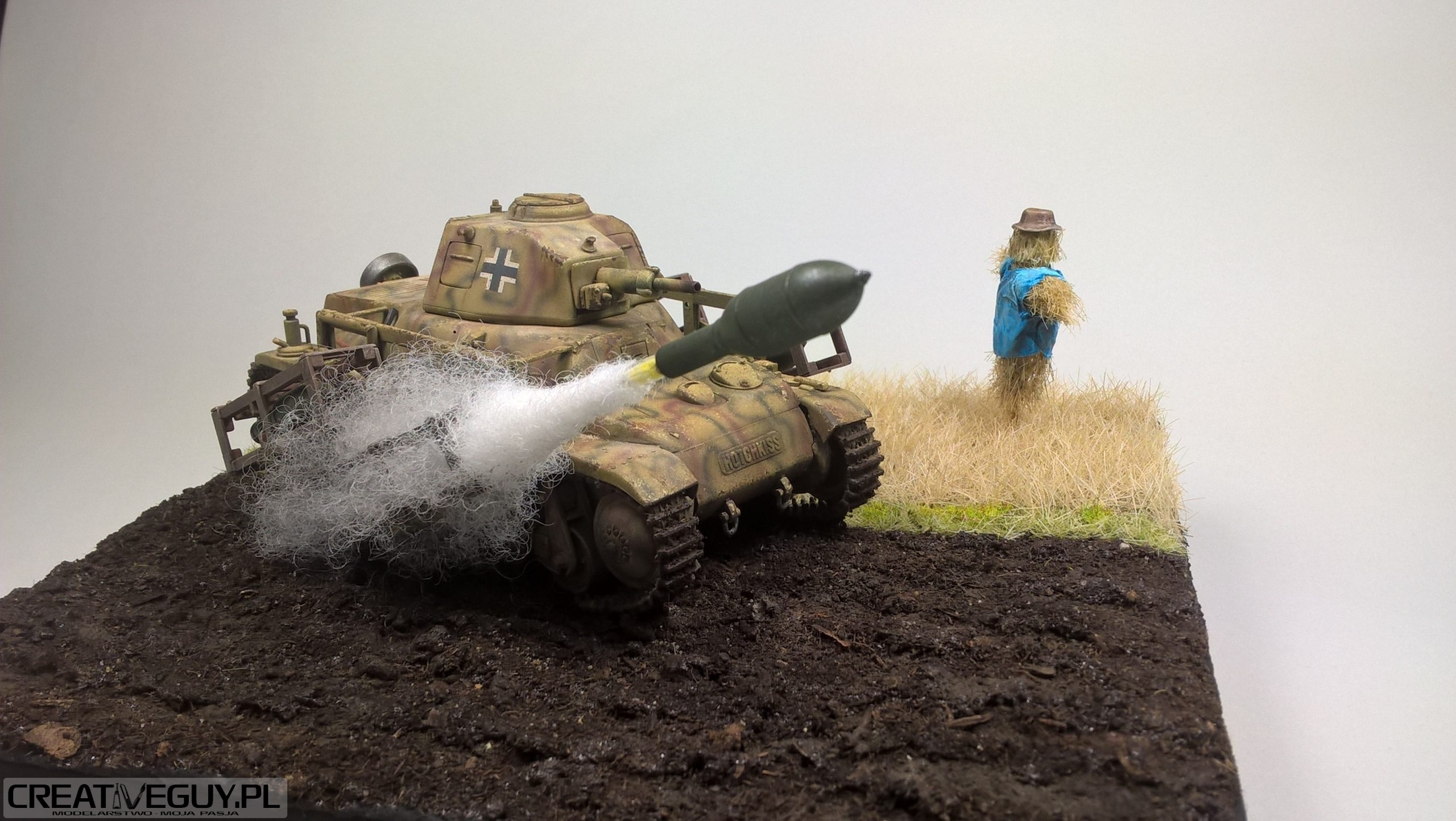 Słoma dostała ciemny wash , żeby ją troszkę przybrudzić i postarzyć, w końcu strach stoi w polu już jakiś czas.